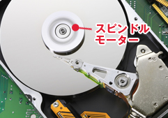 ハードディスクを回転させるためのモーター部分。 損傷した場合、メディアを正常に回転することが出来なくなるためHDDが認識できなくなる。